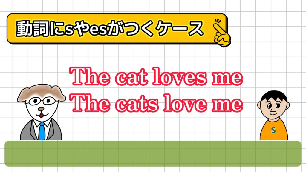 3人称単数というのは、先ほどの表では「he」と「she」ですね。だから、「loves」と言っていたんだ。