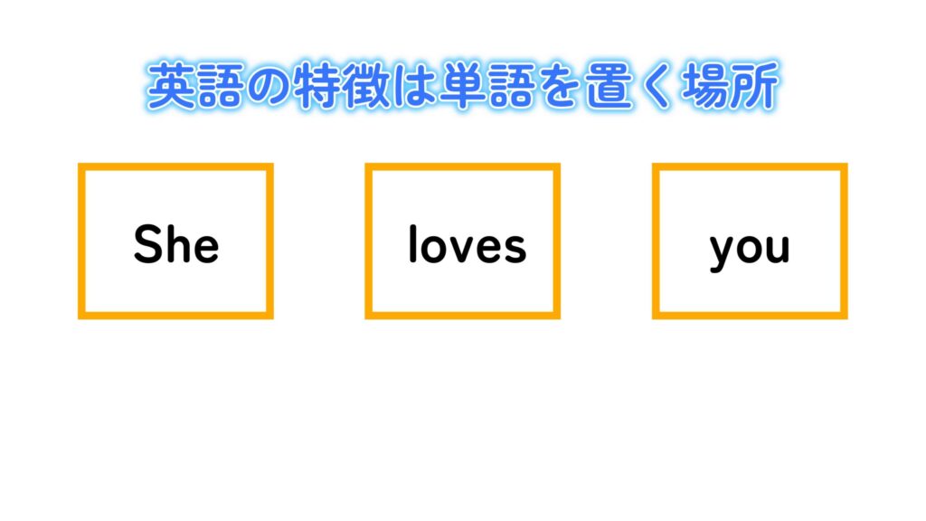 「You」「she」「loves」と言ったり、「Loves」「you」「she」と言うと、意味が全く通じなくなってしまいます。
